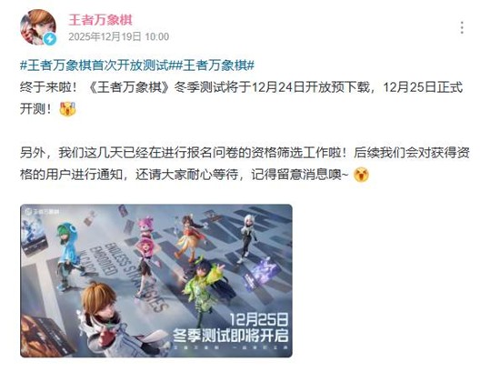 以上就是指玩手游网小编为你带来的《王者万象棋》冬季测试时间确认的全部内容,更多精彩游戏资讯攻略尽在指玩手游网,感兴趣的小伙伴欢迎点击关注收藏本网站哦。