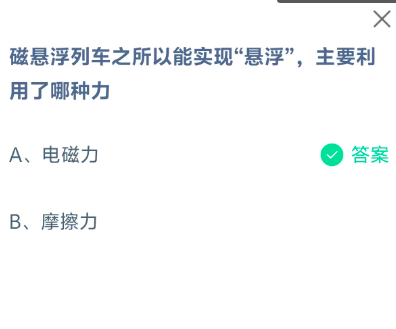 磁悬浮列车之所以能实现“悬浮”,用了哪种力?