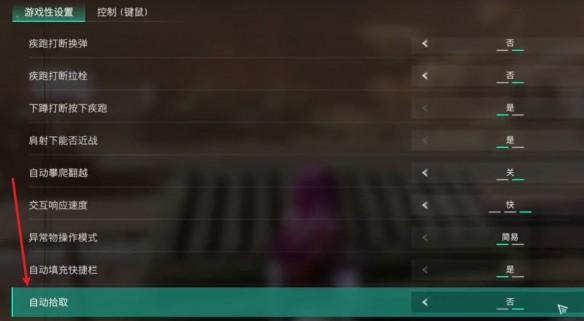 2、进入游戏设置→游戏性设置,找到自动拾取。
