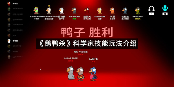 《鹅鸭杀》是一款多人推理解谜游戏,玩家们在游戏开局中会随机获得一个职业角色,如果自己是科学家这个职业,那么该怎么玩呢?现在就让指玩手游网的小编为大家带来关于《鹅鸭杀》鹅鸭杀科学家技能玩法介绍的全部内容吧,感兴趣的小伙伴一定不要错过哦。