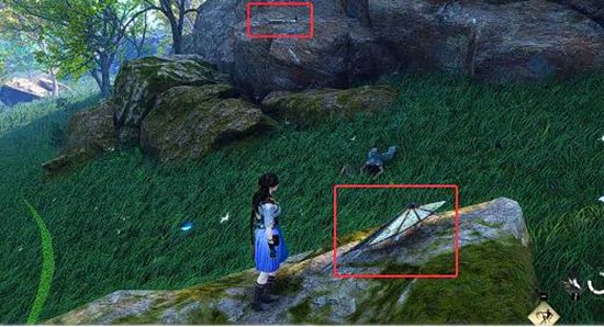交还刘三妹后,她提示石头山有线索,前往拾取「木鸢断翅(左)」与「木鸢断翅(右)」。