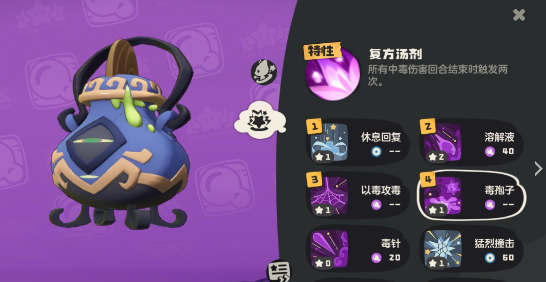 推荐配招:休息回复、溶解液、以毒攻毒、毒孢子。