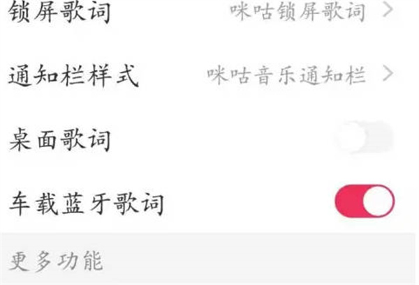 3、在设置页面,点击“车载蓝牙歌词”,然后开启右侧滑块。