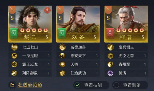 程普技能根据受击次数提升统率和武力,契合反击体系;刘备受击获得治疗,保证续航。