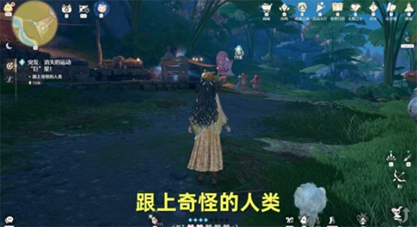 2、找到一群菇和奇怪的人类NPC,会被短暂硬控,几秒后恢复。点击对话正式接取任务,跟随奇怪的人类NPC移动。
