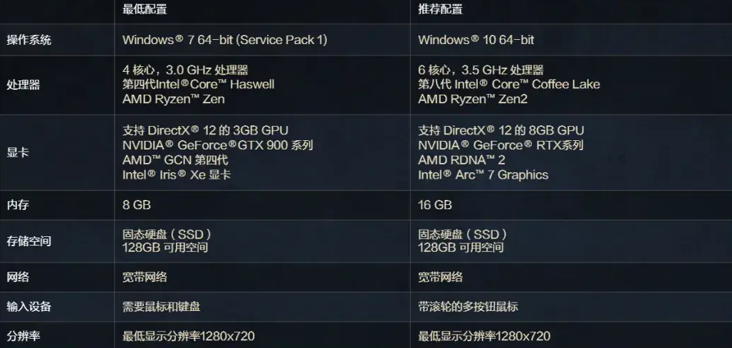 最低配置