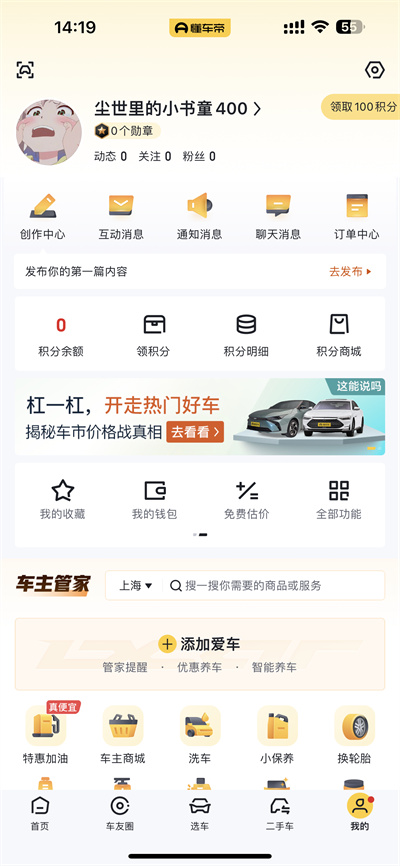 1、打开懂车帝软件,点击右下角 我的,然后选择 免费估价。