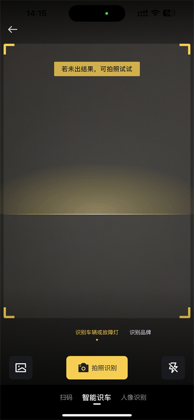 4、进入选车页面后,点击右上角的摄像头图标,对准想要识别的车辆进行扫描即可。