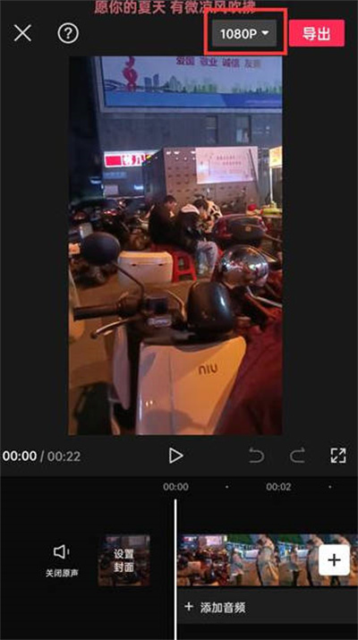 导入素材后,点击右上角【1080p】,选择所需清晰度。