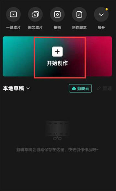 打开剪映,点击【开始创作】,导入视频素材。
