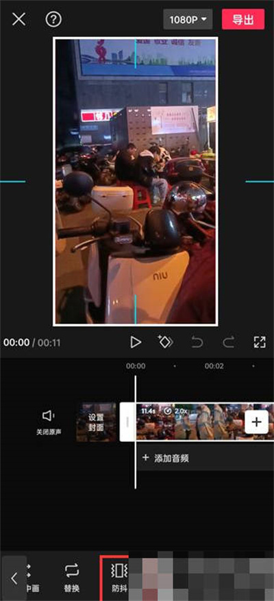 在下方功能栏向右滑动,找到并点击【防抖】功能。