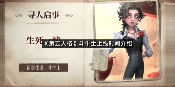 《第五人格》是一款非常热门的公平逃亡竞技游戏,玩家们可以在游戏中使用各种角色来赢得对局,最近全新角色斗牛士来袭,很多玩家都想知道这位超人气角色斗牛士什么时候上线呢?现在就让指玩手游网的小编为大家带来关于《第五人格》斗牛士上线时间介绍的全部内容吧,感兴趣的小伙伴一定不要错过哦。