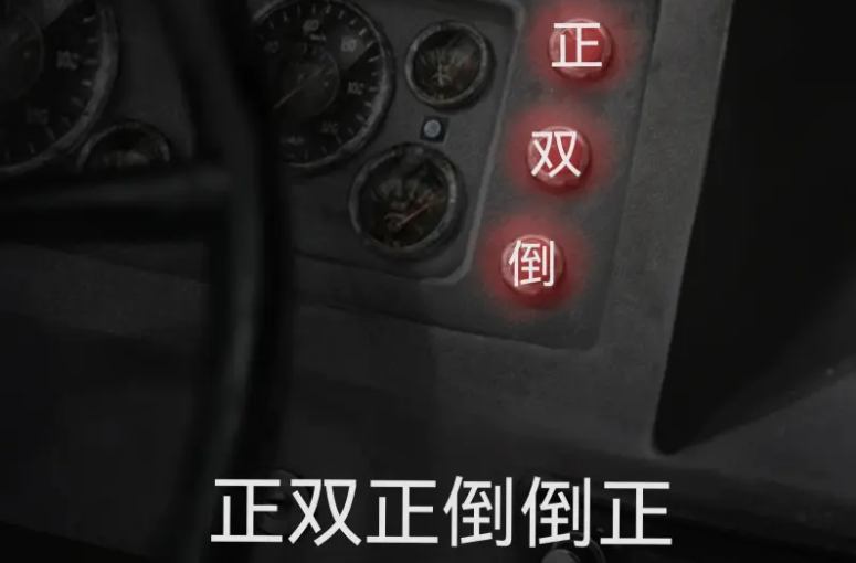 16、来到公交车前部,点击方向盘下方的三个红色按钮,它们分别对应正三角、双三角和倒三角(具体原因暂不明)。按照正、双、正、倒、倒、正的顺序按下按钮,公交车灯会亮起。