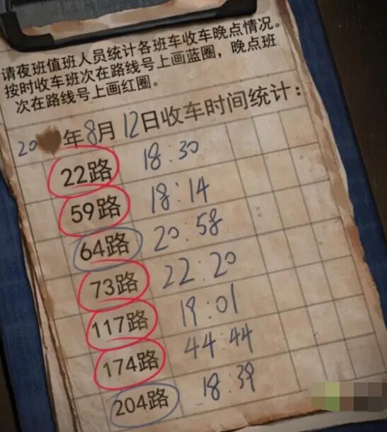 18、根据公交站右侧车辆的运行时间,末班车时间加上单圈运行时间等于收车时间,计算每趟车的收车时间,然后使用两支圆珠笔点击公交线路,如图所示。