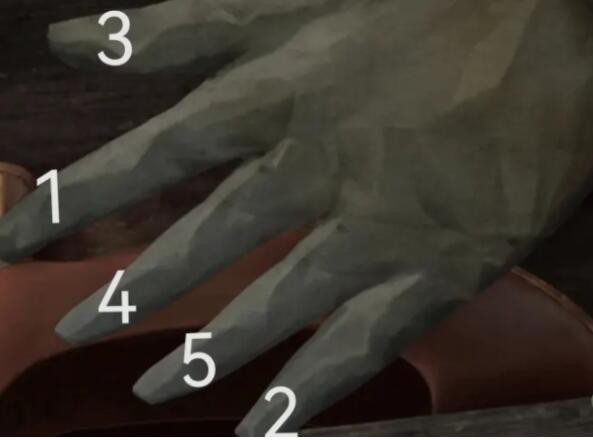 5、输入正确后,紫色纸人手中的箱子会自动打开,点击箱子里的物品时,纸人会用手盖住物品,然后按照下面的顺序依次点击纸人手指。