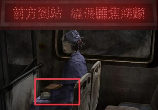 3、视角切换到张辰瑞,他在公交车的后部点击车门,获取到一张民国时期的纸币,然后将这张纸币投入公交车前部的自助售票机,投币后,公交车前部的到站牌亮了起来。