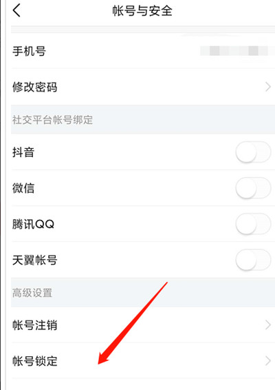 4、在“账号与安全”页面,点击“账号锁定”功能。