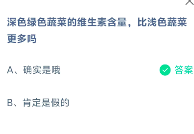 深色绿色蔬菜的维生素含量,比浅色蔬菜更多吗?这是今天《支付宝》每日一题的问题,相信我们很多用户都很想知道这个问题的答案是什么?这么一个可以领取饲料的机会相信我们很多用户都不想错过,这里指玩手游网的小编为你带来了2026《支付宝》2月1日每日一题最新答案介绍(2)的全部内容,喜欢的小伙伴欢迎点击进入看看吧。