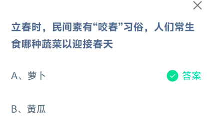 立春时,民间素有“咬春”习俗,人们常生食哪种蔬菜以迎接春天?