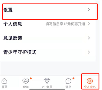 1、点击个人中心中的设置;