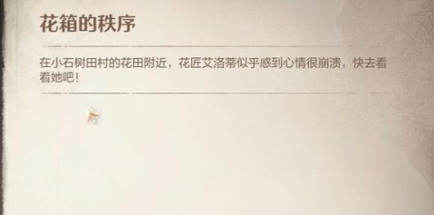 1、启动游戏后,先打开任务菜单,领取关于花箱的序章任务。