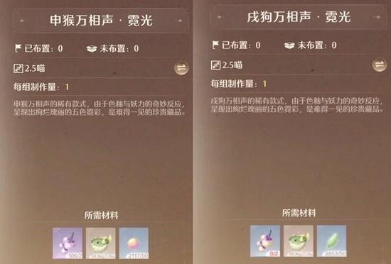 霓光款特典:获得对应家具图纸,可在家园制作(每种材料不同)