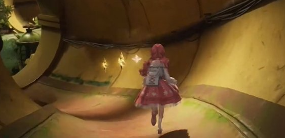 2、进入房间后,沿着通道直行再向左转,你会发现两个灵感露珠等待着你去收集。