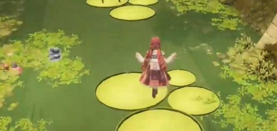 26、在图示位置与青蛙进行对话,然后走上大荷叶。