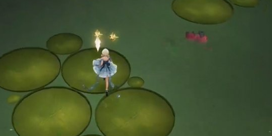 11、拿到奇想星后,出去并跳到荷叶上,同时尽量避免触碰银色泡泡。