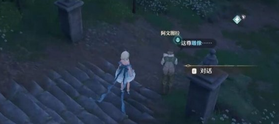 2、到达后,沿着右下方的路径前进,到达石柱附近,并与阿文图拉进行对话。