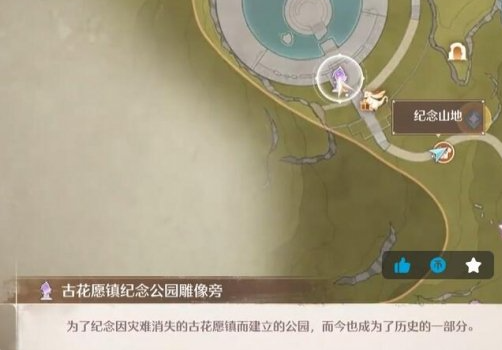 1、为了完成任务目标,你需要前往古花愿镇纪念公园的雕像附近,通过传送抵达指定地点。