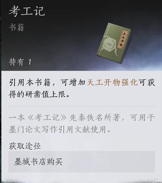 本任务核心为制作“天工开物”强化组件,制作一次即可获得积分。