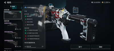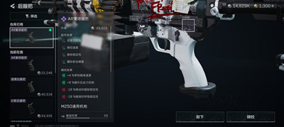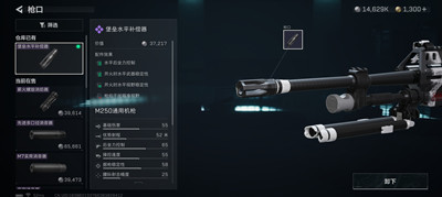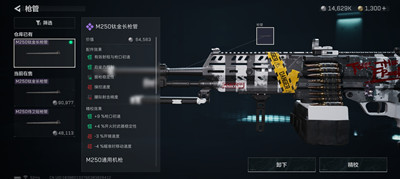 枪管方面我选用了钛晶长枪管。一方面它能够提升M250的射程,使其更有效应对远距离敌人;另一方面,枪口初速的提升有助于提高对枪时的胜率。