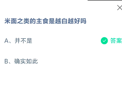 米面之类的主食是越白越好吗?这是今天《支付宝》每日一题的问题,相信我们很多用户都很想知道这个问题的答案是什么?这么一个可以领取饲料的机会相信我们很多用户都不想错过,这里指玩手游网的小编为你带来了2026《支付宝》3月6日每日一题最新答案介绍(1)的全部内容,喜欢的小伙伴欢迎点击进入看看吧。