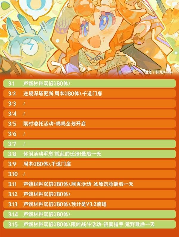 以上就是指玩手游网小编为你带来的《鸣潮》3月活动日历分享的全部内容,更多精彩游戏攻略资讯尽在指玩手游网,感兴趣的小伙伴欢迎点击关注收藏本网站哦。