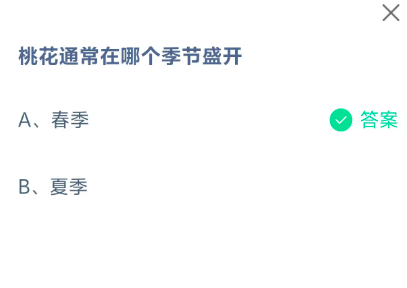 桃花通常在哪个季节盛开?这是今天《支付宝》每日一题的问题,相信我们很多用户都很想知道这个问题的答案是什么?这么一个可以领取饲料的机会相信我们很多用户都不想错过,这里指玩手游网的小编为你带来了2026《支付宝》3月7日每日一题最新答案介绍(1)的全部内容,喜欢的小伙伴欢迎点击进入看看吧。