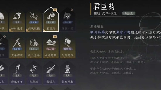 明川药典专属治疗心法,燕云十六声奶妈流派核心。释放技能“坐看云起”并在范围内,可额外回复露水值,显着提升续航。