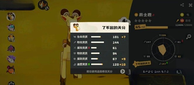爵士鹿:120+速度、110+物攻,首领进化后输出高。被动“蓄电池”保证每次入场增加20%输出,多次返场切换可打出惊人伤害。性格推荐“开朗”,提升10%速度,更易抢先手。