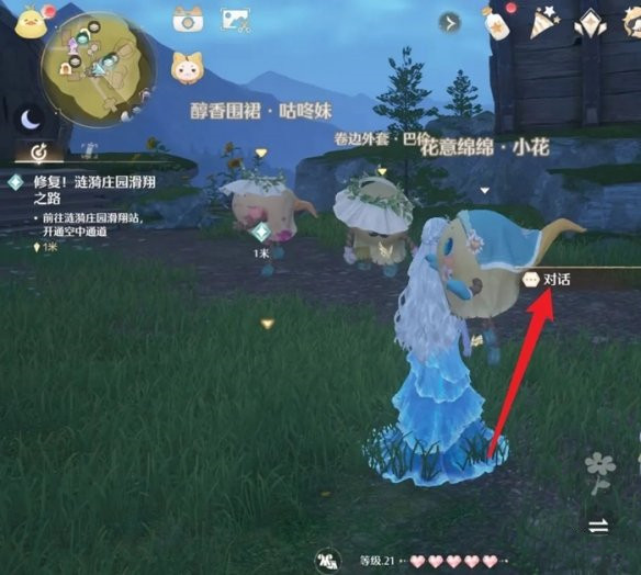 4、寻找花意绵绵的小花,与其进行交谈和互动交流。