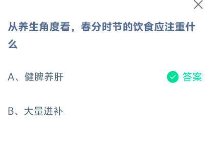 从养生角度看,春分时节的饮食应注重什么?是今天《支付宝》每日一题的问题,相信我们很多用户都很想知道这个问题的答案是什么?这么一个可以领取饲料的机会相信我们很多用户都不想错过,这里指玩手游网的小编为你带来了2026《支付宝》3月20日每日一题最新答案介绍(2)的全部内容,喜欢的小伙伴欢迎点击进入看看吧。