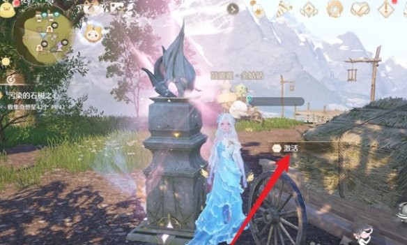 5、弹射到目标位置后,点击激活,即可成功激活木桶荫地顶部的传送点。
