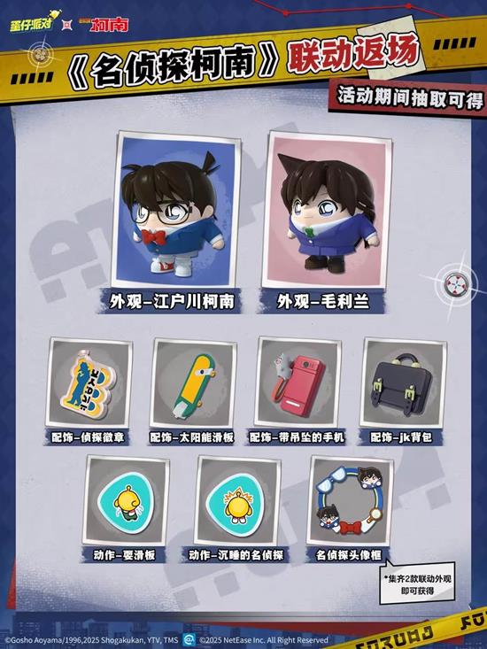 10月24日,联动第二弹正式上线,怪盗基德与灰原哀全新加入,江户川柯南与毛利兰也将限时返场,带来熟悉的侦探氛围。