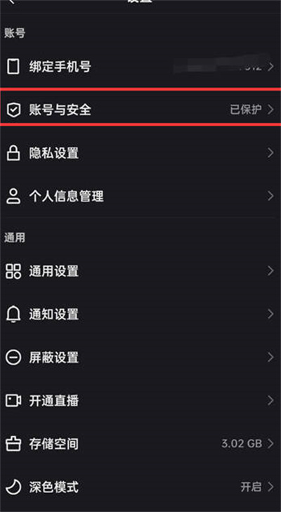 2、我们进入设置之后,点击其中的“账号与安全”功能。