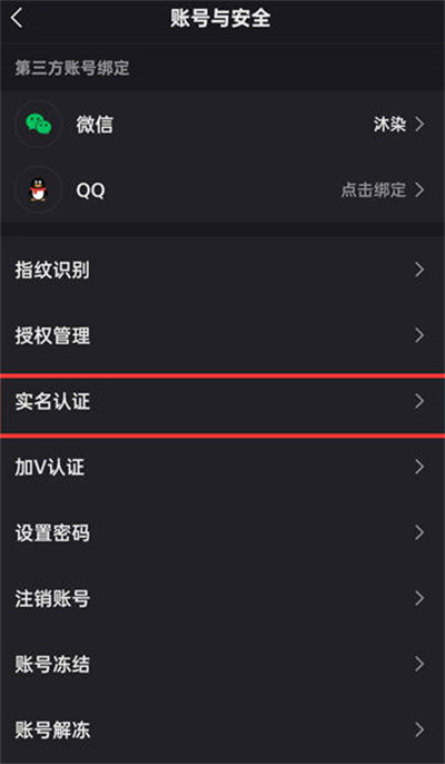 3、进入账号与安全之后,点击“实名认证”即可查看。