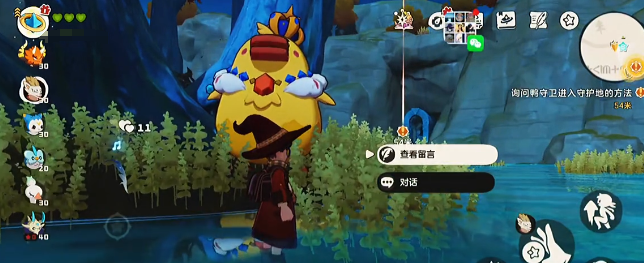 基础操作:采集水域附近的特定水系食材,靠近鸭眷属投喂即可提升好感度。