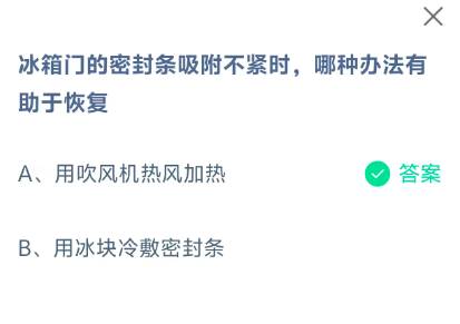 冰箱门的密封条吸附不紧时,哪种办法有助于恢复?这是今天《支付宝》每日一题的问题,相信我们很多用户都很想知道这个问题的答案是什么?这么一个可以领取饲料的机会相信我们很多用户都不想错过,这里指玩手游网的小编为你带来了2026《支付宝》4月8日每日一题最新答案介绍(1)的全部内容,喜欢的小伙伴欢迎点击进入看看吧。