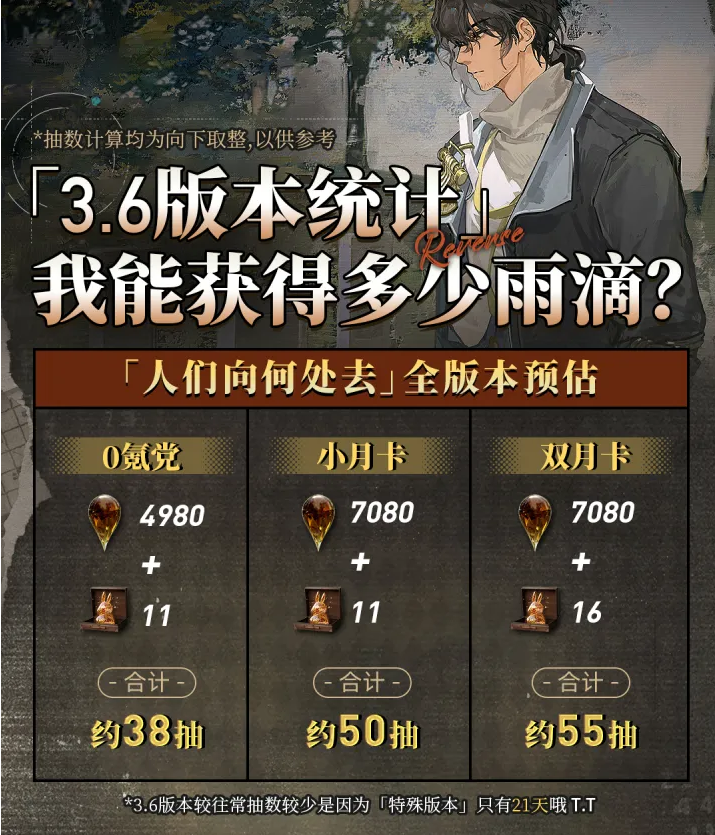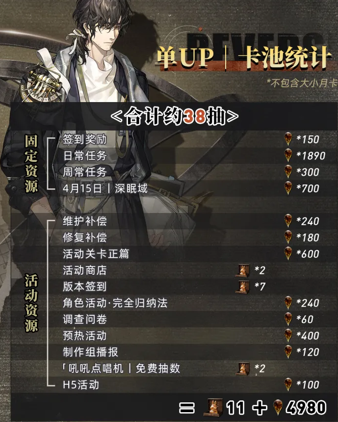 以上数据假设玩家完成人工梦游与迷思海等活动,若未打满,需要自行调整抽数