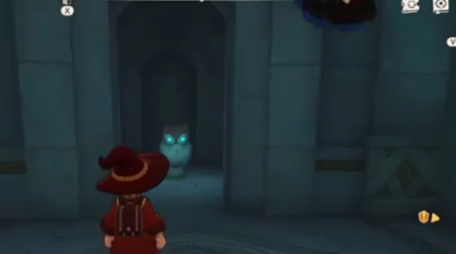 进入平台区域 → 使用“星星魔法”攻击猫头鹰精灵