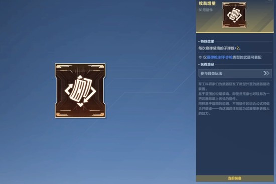01号插件“续装增量”可在每次换弹时增加两发弹药,通过多轮叠加提升弹匣容量,使随风之锤在连续战斗中表现更为稳定。