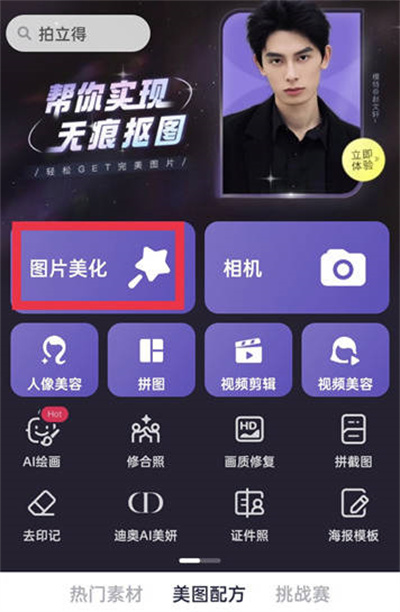在首页找到“图片美化”功能并点击进入。